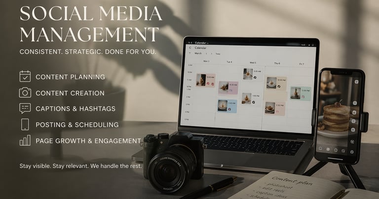Social media management ensures your content is consistently planned, created, and posted with intention, helping your business stay visible, relevant, and aligned with your brand.